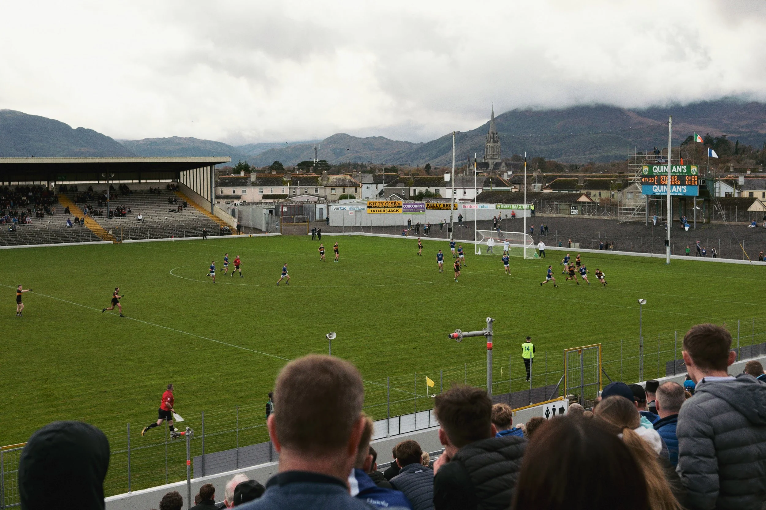 Austin Stacks player carrying the ball to set up a score against Laune Rangers. The comfortable win for Stacks of 1-14 to 0-05 in the final replay means they regain their Senior Championship status. 9th November 2024 - Fitzgerald Stadium, Killarney Co. Kerry, Ireland