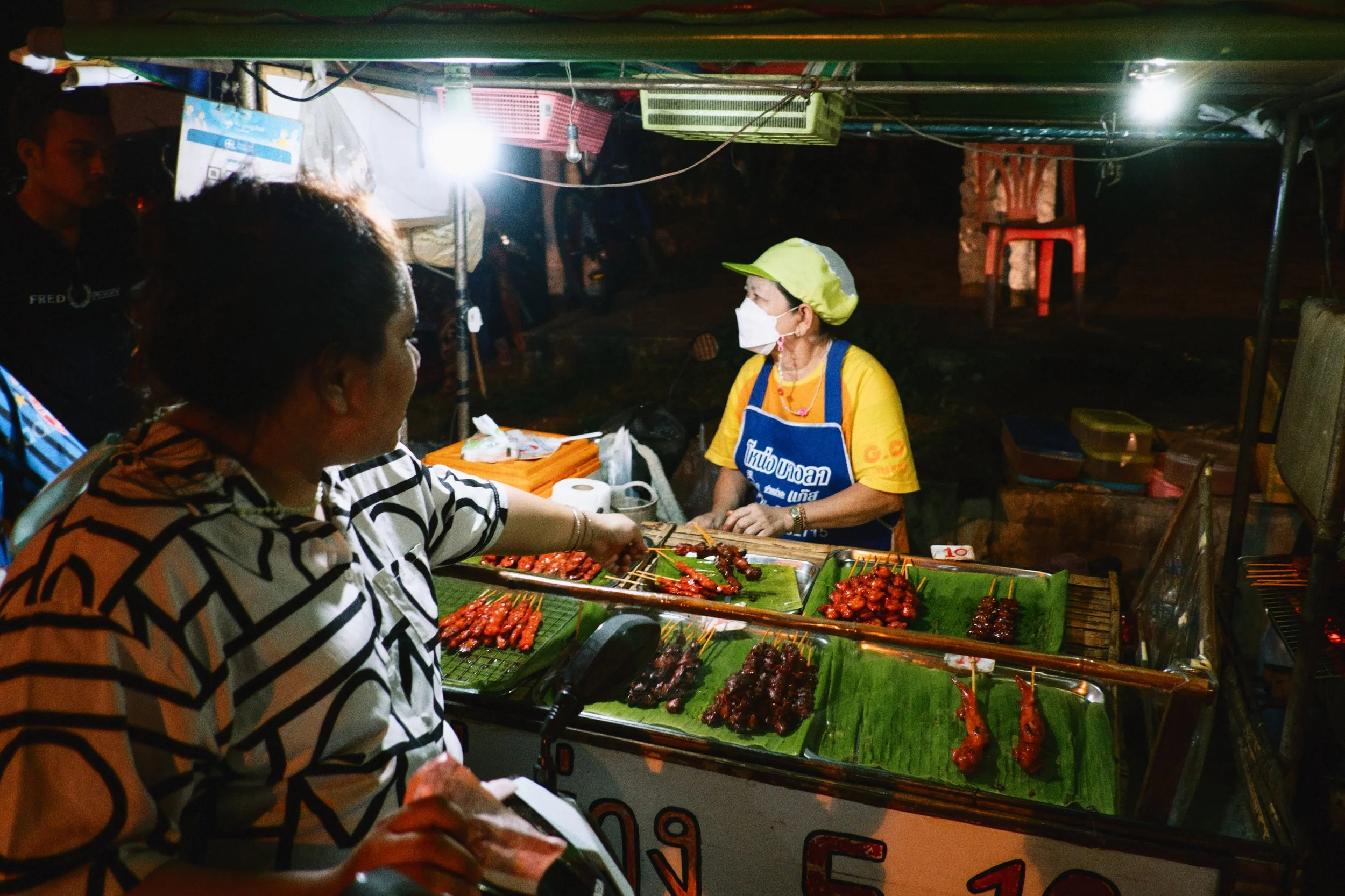 Street food merchant conducting a sale. 9th February 2023 - Phuket, Thailand.